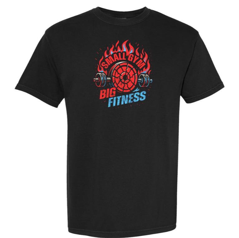 Classic black meets bold hometown pride. This Comfort Colors tee features the Small Gym Big Fitness logo with fiery Webb City Cardinals style — because Webb City is where our heart lies. Soft, relaxed, and perfect for the gym, game days, or everyday wear.
