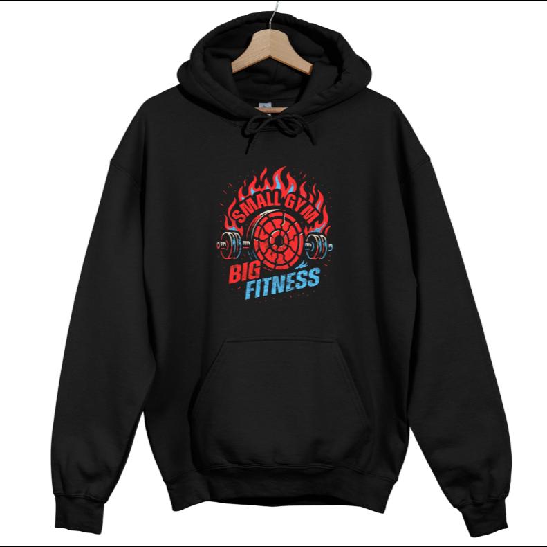 Show your gym pride and hometown spirit in one bold design. This black hoodie features the Small Gym Big Fitness logo fused with Webb City Cardinals colors — because Webb City is where our heart lies. Warm, durable, and perfect for workouts, game days, or everyday wear.