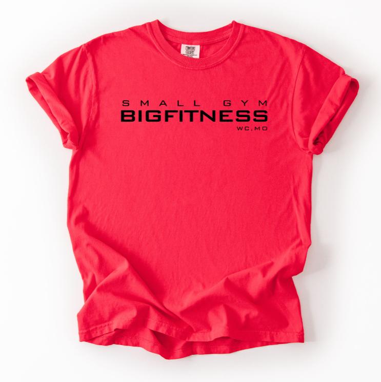 Bold, vibrant, and made for comfort. This paprika Comfort Colors tee features the Small Gym Big Fitness logo front and center, giving you a classic gym look with everyday wearability. Perfect for training, lounging, or repping your gym pride anywhere.